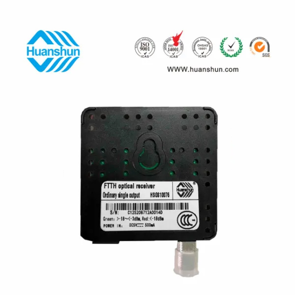 環(huán)順的HSGS10076光接收機(jī)是專為CATV網(wǎng)絡(luò)的FTTH 應(yīng)用而設(shè)計的入戶型光接收機(jī)。具有結(jié)構(gòu)小巧緊湊、式樣美觀、 應(yīng)用方便等 特點(diǎn),在高達(dá)1000Mhz的帶寬下能夠提供穩(wěn)定的輸出電平和優(yōu)異的性能指標(biāo),具有極寬的光功率工作范圍。