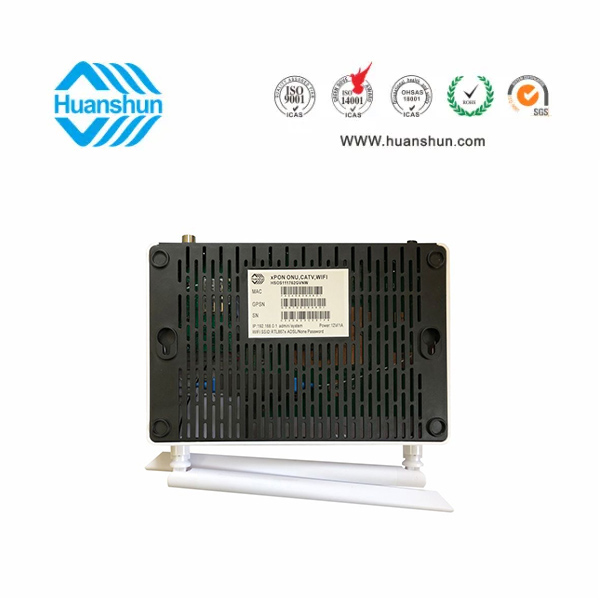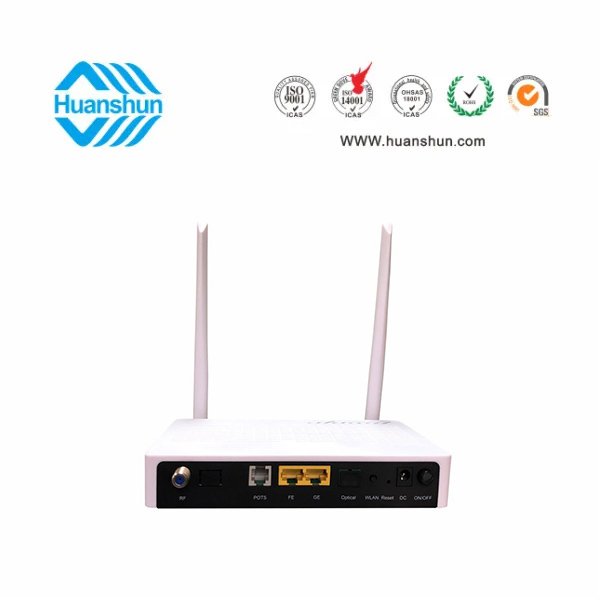 HSOS111762GVNW | G/EPON ONU, PON端口接入,1GE+1FE網(wǎng)絡(luò)接口,1個(gè)POTS 2*2 2.4G WIFI(外置天線300米),CATV1540~1565nm -5~-15dBm inport/RFMD76dBuv恒定輸出,網(wǎng)絡(luò)管理監(jiān)控光接收功率,RF輸出電平,RF on / off,通過內(nèi)置WDM-PON xPON1310/1490nm1~4dBmTX,-28dBmRX連接到xEPON;外置90~255V-12V 1A電源適配器 |
